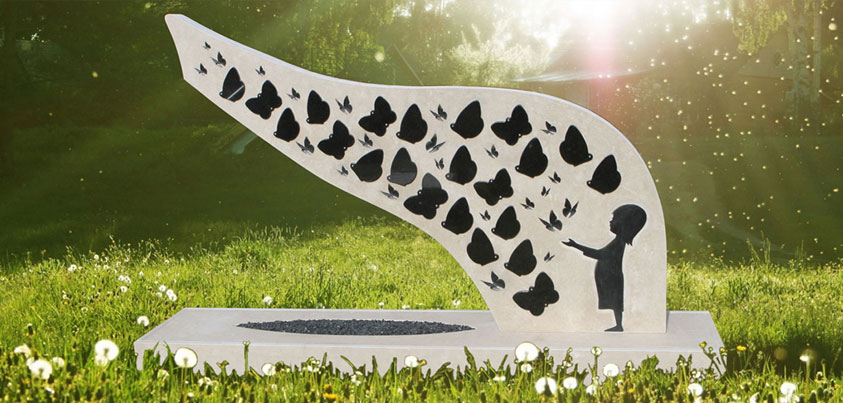 Continuing the Bellatrix theme with 44 black granite butterfly plaques, this double sided memorial will make a stunning addition to any remembrance garden. The base comes complete with 12 vases. The design shown can be amended, if you wish to follow a theme.
