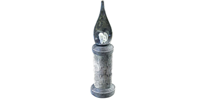 This beautiful feature memorial standing 4 feet 6 inches high provides a stunning centrepiece to your baby garden. The memorial is crafted from Bahama Blue granite and the sleeping cherub hand-carved from Italian marble. Forty two glass tear drop plaques adorn the column, each one suitable for inscription.