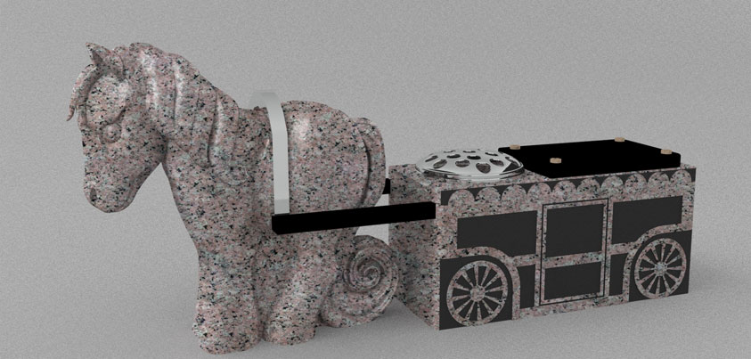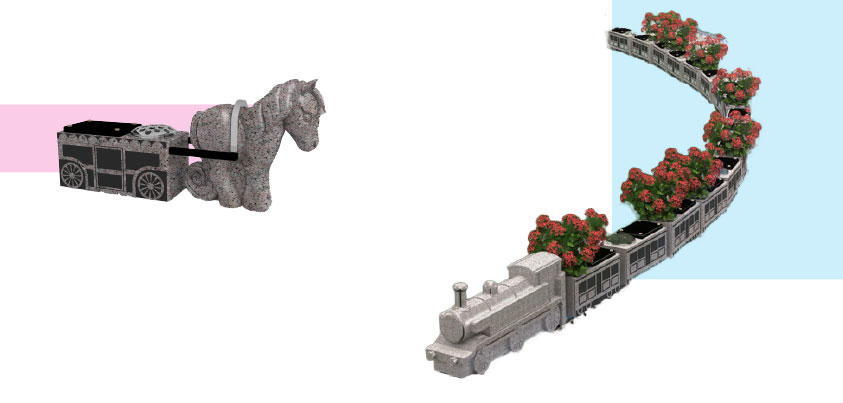A fabulous re-working of our popular boundary kerbs, these granite memorials form an ideal kerb edging to paths and scatter lawns within the Children’s section of your gardens. The carriages house a single plaque and can be adapted to securely hold ashes if required. The Train Engine and Pony can be left natural or painted.